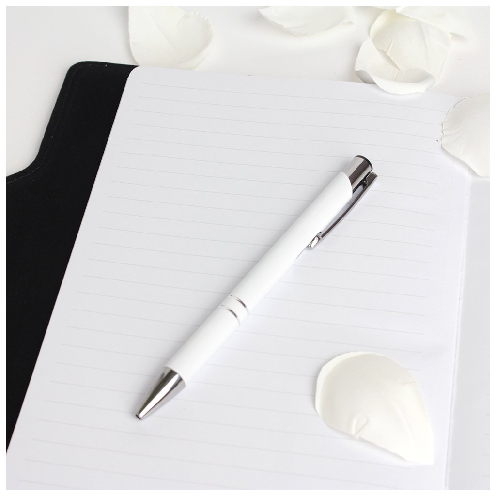 Psaní rukou je více než jen zaznamenávání poznámek – je to způsob, jak se zastavit, propojit se se sebou a dát myšlenkám formu. Naše propiska (kuličkové pero) je lehká, ale zároveň pevná a odolná. Minimalistický vzhled v nadčasovém bílém provedení se stříbrnými detaily ladí s produkty Belum a vytváří estetickou harmonii na vašem stole i v rukou.