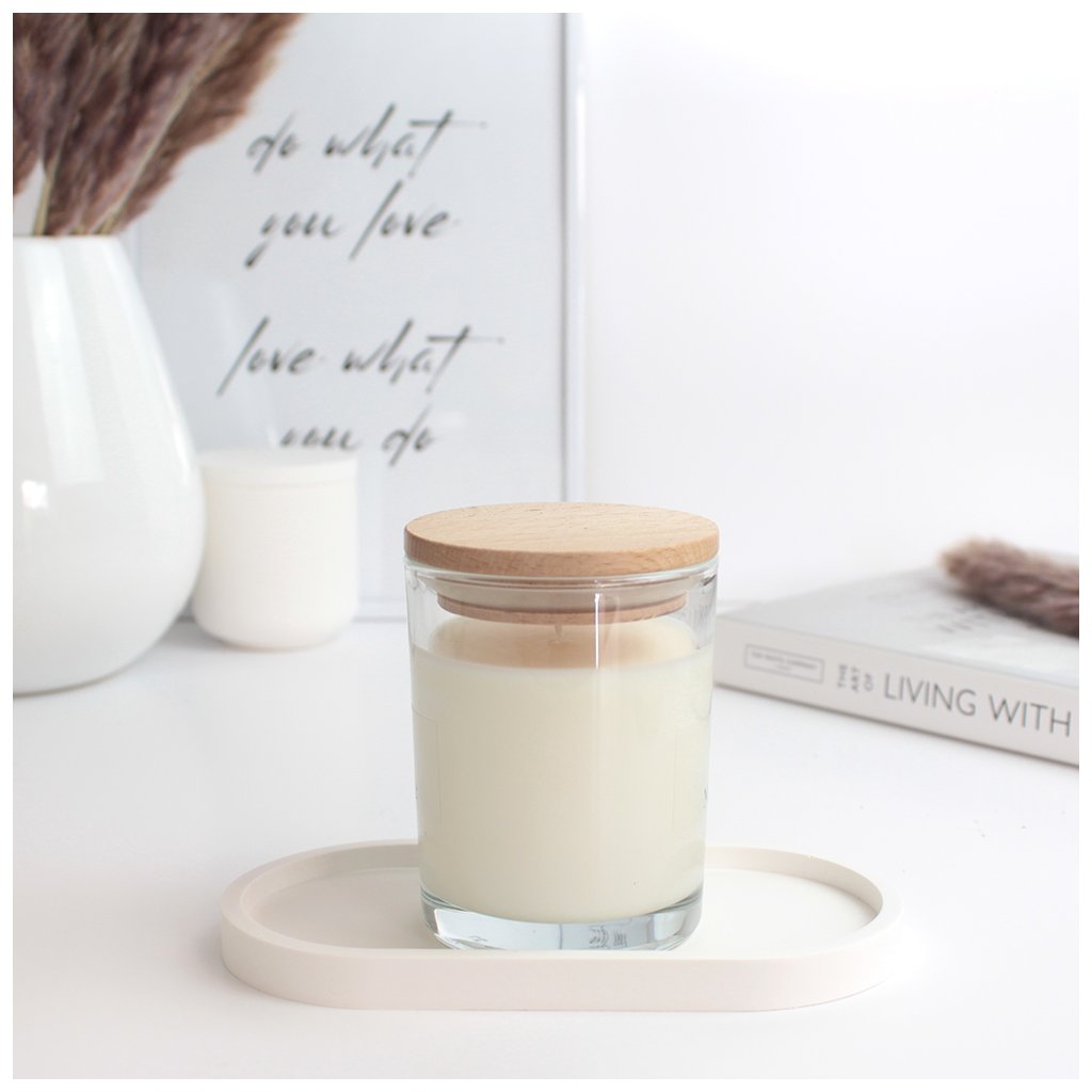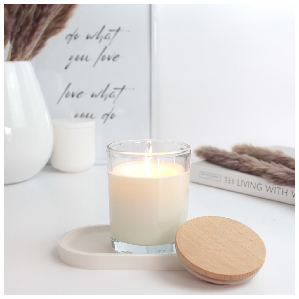Materiály obalu: sklenice z kvalitního materiálu určená pro svíčky, dřevěné víčko