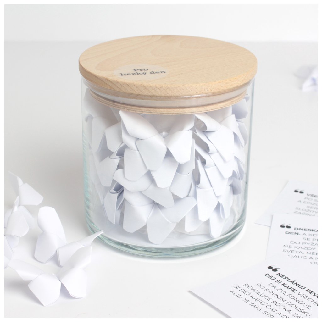 - Sklenice Pro hezký den s 31 citáty – na každý den v měsíci jeden, v hravém origami provedení