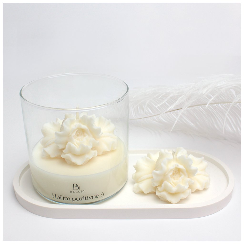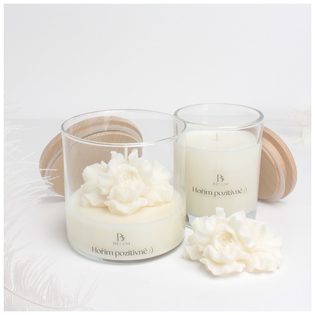 - Sojové svíčky ozdobené květy, které potěší i jako dekorace.